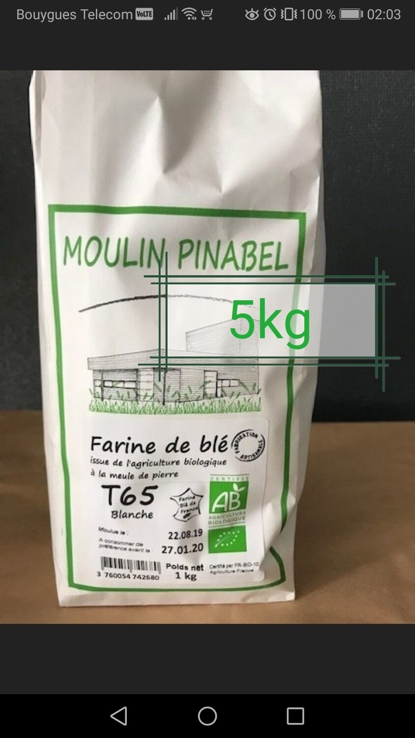 Farine De Ble Bio T65 5kg Pourdebon