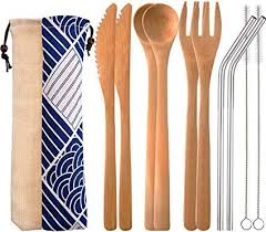 2 Set Couverts En Bambou Set Reutilisable Couverts En Bambou Set Ustensiles De Voyage 7 5 Pouces Couteau Fourchette Cuillere En Service De Couverts Ustensile