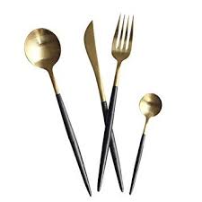 Coolwest Couverts Ensembles 4 Pieces Inox Cuillere Fourchette Couteau Cuilleres A Cafe Or Noir Amazon Fr Cuisine Maison Tableware Housewares Kitchen