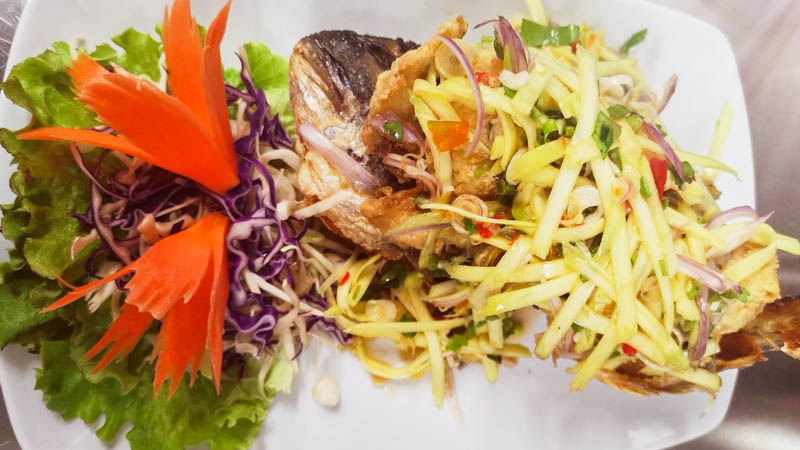 Salade De Mangue A La Burrata Noisettes Grillees Et Pesto De Menthe Del S Cooking Twist Recette Salade Mangue Mangue Salade