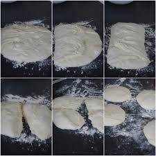 Diluez le sachet de levure de boulangerie dans un petit verre d eau chaude. Mélanger la farine de froment avec le sel l huile d olive la levure délayée dans 5 cl d eau tiède sucrée ajouter de l eau jusqu à que. Dans un grand saladier mélanger la farine fécule sucre et sel avec une spatule en bois.