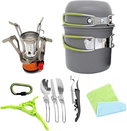 Ensemble D Ustensiles De Cuisine De Camping En Plein Air Mini Cuisiniere Portable Et Combinaison De Cuillere A Fourchette Adapte Pour La Randonnee En Camping En Plein Air Et Le Pique Nique Vert A Amazon Fr Cuisine