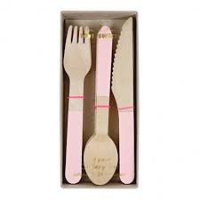 Couverts En Bois Rose Pastel Party Utensils Wooden Utensils Cutlery Set